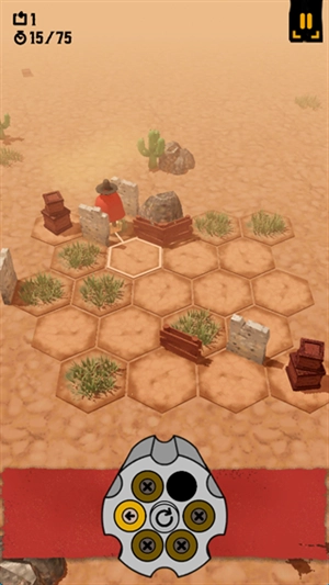 2、屏幕下方的弹仓不仅是显示子弹数量的标识,还代表着可攻击的方向,而且牛仔每射击一次,弹仓就会随之转动一次。