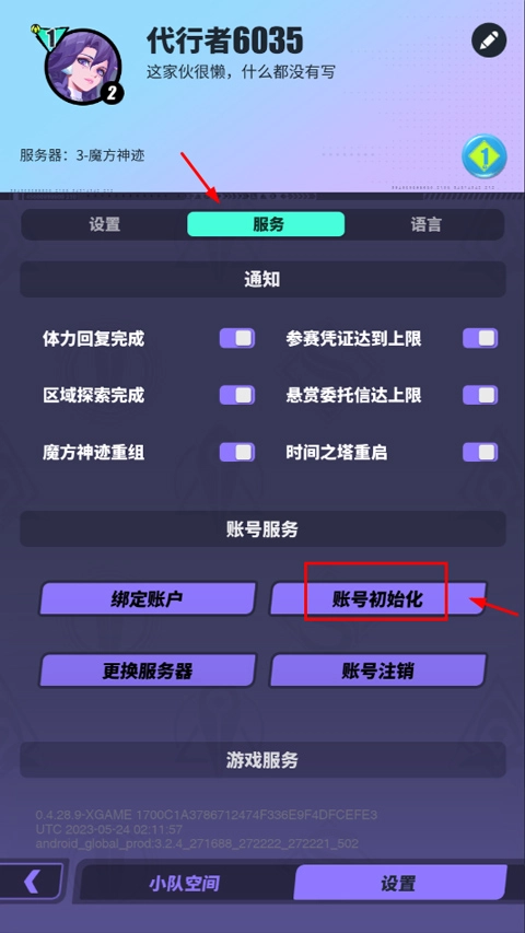 3. 进入设置菜单后,选择“服务”,找到“账号初始化”选项;