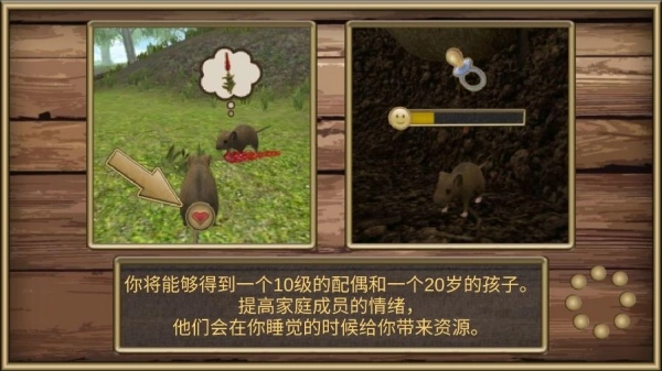 2. 角色具备升级机制,经验值主要通过敲打那些搞破坏的地鼠以及完成各类小任务来积累,当等级提升至10级时,还可以寻找一位伴侣。