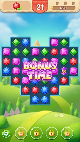 3、当形成三个及以上相同的钻石时,会获得奖励分;有时还会触发连锁反应,这种现象被称为级联,级联过程中也能获得奖励积分。