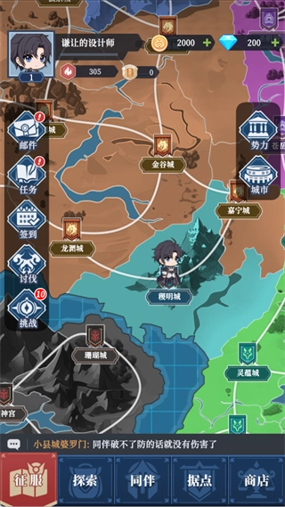 作为核心SLG玩法,玩家将在大地图中对多个城池进行征服与探索。玩家所在的城市是“稷明城”,以此为起点来拓展自身势力。
