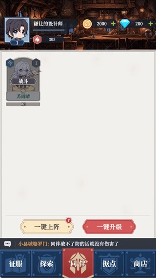 同伴系统是提升战力的关键,已解锁的同伴支持一键上阵与升级,能成为玩家征战四方的核心伙伴。