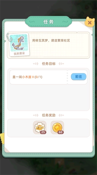点击 “前往”完成任务可获得任务奖励,快速提升小镇等级。