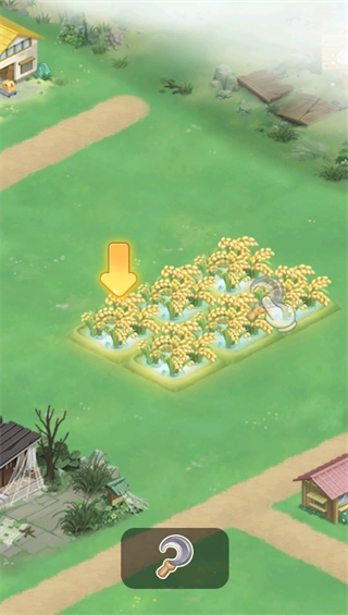 点击成熟的稻田,使用镰刀工具收割作物,获取基础食材原料,为后续的加工和贸易提供支撑。