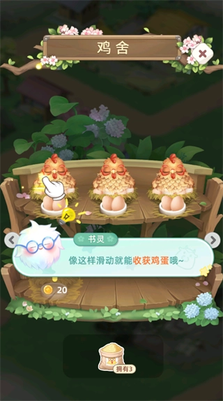 在鸡舍通过滑动操作收取鸡蛋,消耗饲料后鸡可以重复产蛋,产出的鸡蛋既可以直接售卖,也能加工成食品。