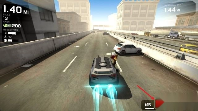 2、当有僵尸爬上汽车的时候,点击右侧对应的红点即可瞄准射击。