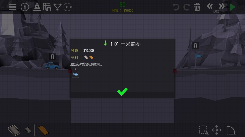 ,精确设定动作触发顺序,实现多阶段自动化操作。1、进入后,你将立即开始首次桥梁设计任务;