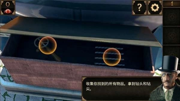 4、回到之前锁住的箱子,用钻头钻开,得到红色宝石。