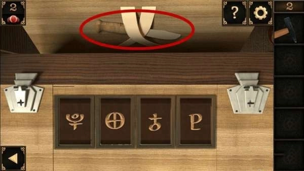 5、根据符号输入相应图案打开上方最左边的箱子,拿走小刀。