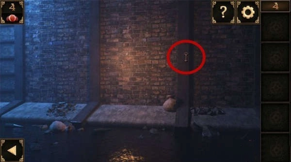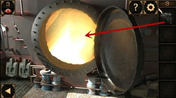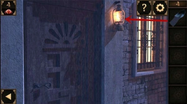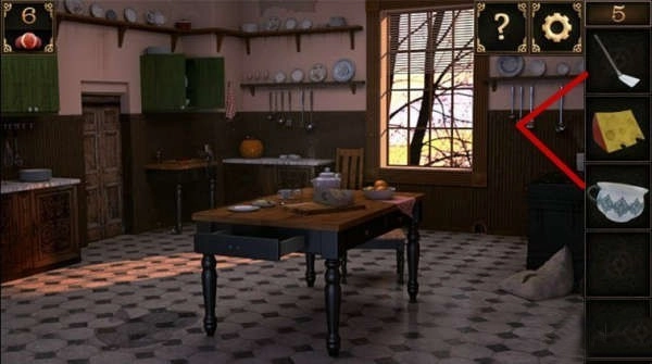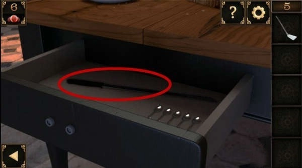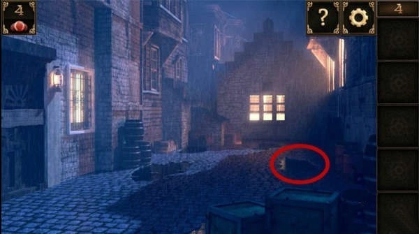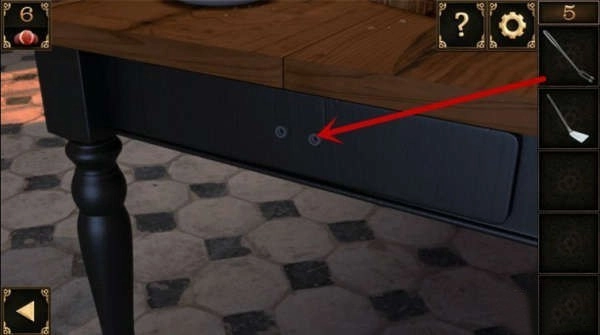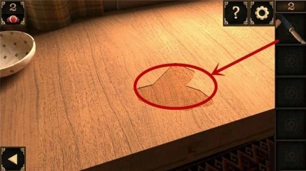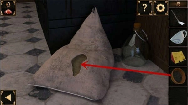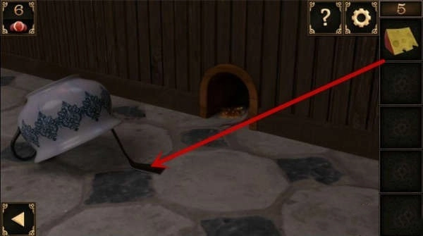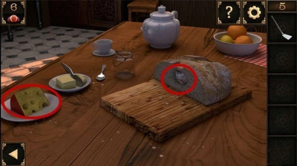 10、窗户下方有个洞口。把装着锅铲的大碗摆在洞口前,接着把奶酪放在锅铲上,洞里那只贪吃的老鼠就会掉进陷阱,被大碗扣住,之后就能取走洞里的钥匙了。
