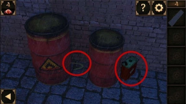 4、点击右边的红色桶,可以得到钩子和打火机。