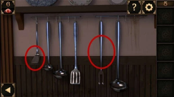 1、首先来到右边的工具墙,拿走叉子和锅铲。