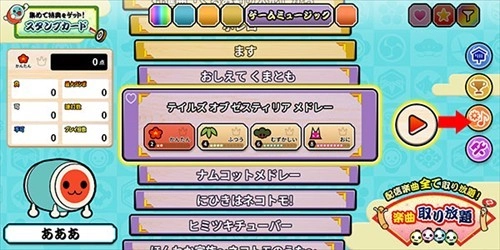4、若要更换太鼓的敲击音效,在曲目选择界面点击右上角第三个图标,就能进入设置面板进行操作。
