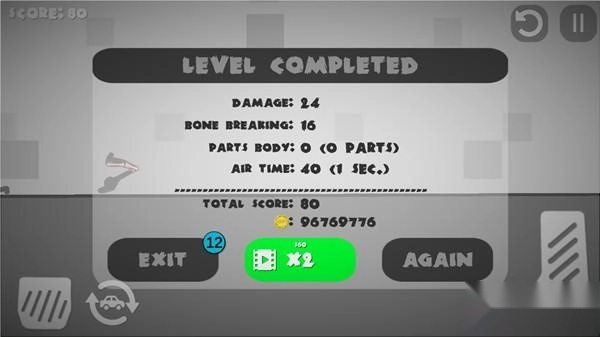 3、驾驶车辆撞击火柴人可获取奖励,造成的伤害越大,奖励就越丰厚。但要注意操控车辆,速度过快很容易导致翻车。