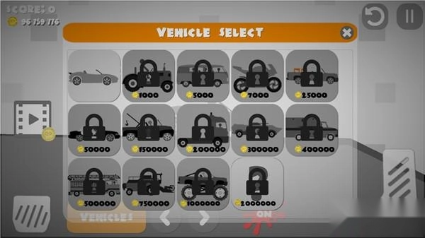 6、这里的各类车辆解锁后就能使用,并且无需按顺序解锁,只要金币数量足够,直接解锁最后面的车辆也是允许的。
