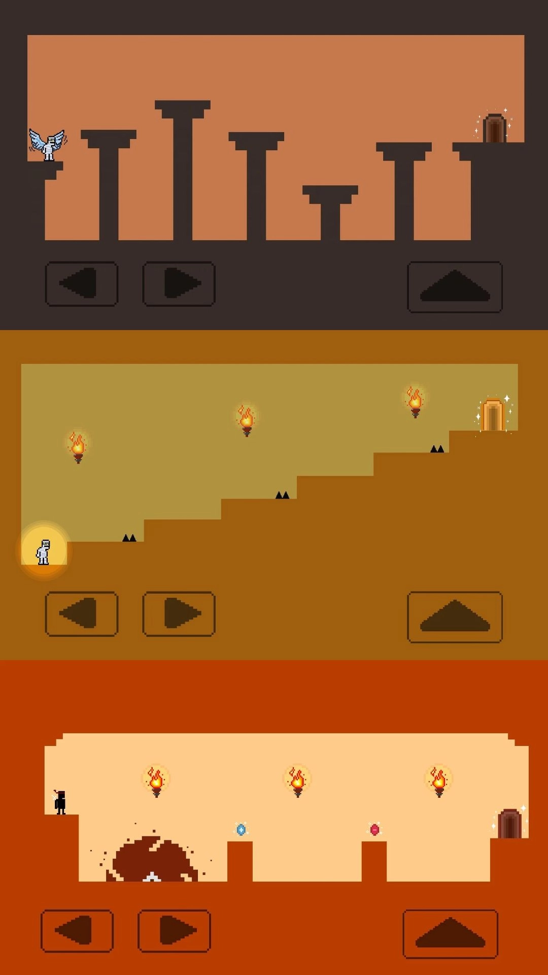 1、通过虚拟摇杆或按键控制角色移动与跳跃,精准踩踏平台,避开各类致命陷阱。