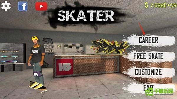 2、为玩家提供了很多的关卡,每个关卡都有不同的地图,点击SKATE开始;