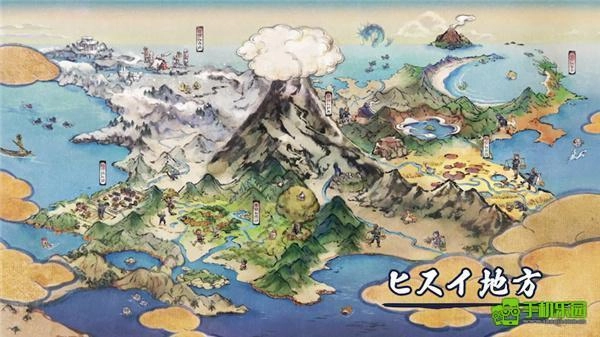 仅仅是看了预告视频,《阿尔宙斯》就已经传递出强烈的开放世界氛围。玩家将以「祝庆村」为起点,开启探索洗翠地区各区域的旅程。和《怪物猎人:世界》类似,本作会依据不同环境特点打造多个开放式箱庭地图,用《宝可梦》系列的概念来理解,就像是一场穿越多个「旷野地带」的冒险。洗翠地区的核心是直插云霄的天冠山,从地图上还能看到雪原、河流、温泉、入海口等丰富多样的自然景观。因为类似村落的地点只有「祝庆村」一处,所以整个地图除了这个据点外,大概率都被广阔的自然环境所覆盖。由此可见,与系列以往作品截然不同的全新探索体验,将是本作最值得期待的亮点之一。