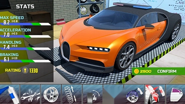 4、精细的车辆细节呈现与升级系统设计 通过和机械师协作对汽车进行升级,提升车辆性能,让它在比赛里拥有更强的竞争力。