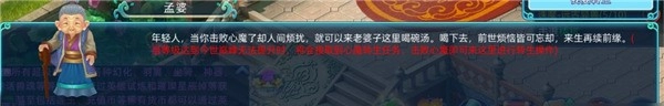 当角色等级达到转生要求,并且集齐所需的转生材料后,点击【我要转生】按钮,即可开启转生挑战任务。完成挑战任务后,还需找到孟婆,喝下孟婆汤以忘却前世的种种烦恼,这样才能顺利完成转生,实现角色的蜕变!