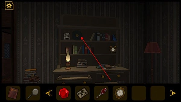 5、检查桌子的抽屉,获取道具并查看日记,把红色机关石放进墙上的红色凹槽里,转身会看到进门的地方出现了一只怪物,将门关好,留意门上的花纹