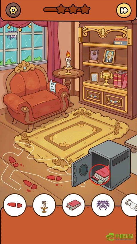 2、我们先找到沙发上的纸条,就能知道密码是112,接着用这个密码打开地上的保险箱,就能获得那本书了。