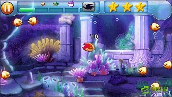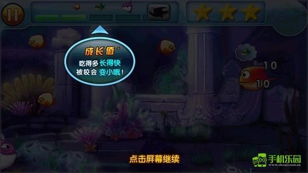 2、吞噬成长:通过不断吞食体型小于自身的鱼类来积累经验值,从而逐步成长为更大体型的鱼。