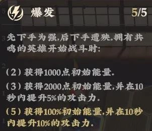 这个阵容之所以强是因为5爆发的羁绊直接能获得初始能量和攻击加成,让所有的英雄一开战即可释放技能,所谓先下手为强。