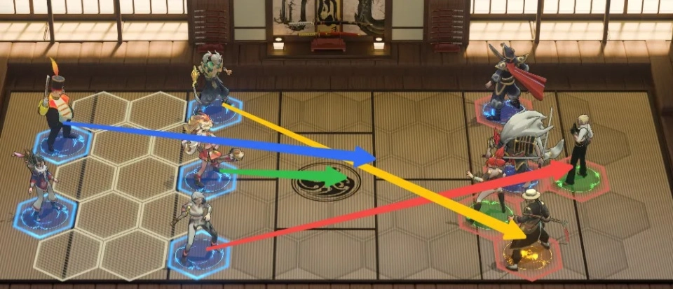 李三、虞丹伶和李玲珑在第一排,张潮和兰姝在最后一排。这里可以重点说一下,虞丹伶和李三在站位上要靠近些,不要分太开,他们之间可以互相打配合。