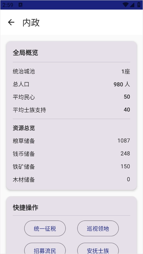 5、之后你就需要处理好内政,让你的城池越来越强大。