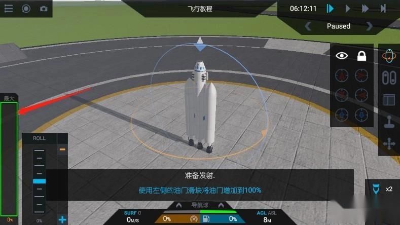 5、准备发射的时候,使用左侧的油门滑块将油门增加到100%;