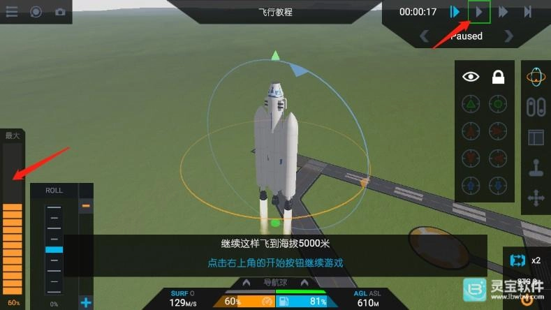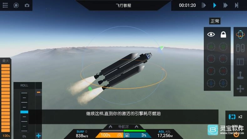 7、随后火箭顺利起飞,在飞行过程中,玩家需要持续调整火箭的重力转向和油门。
