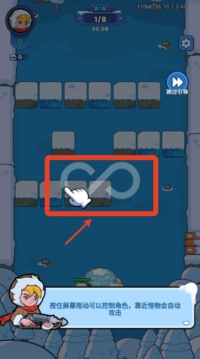 1、玩家进入游戏后可操控角色移动,当角色靠近怪物时会自动触发攻击。