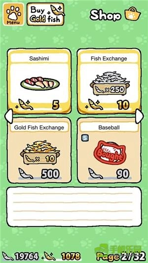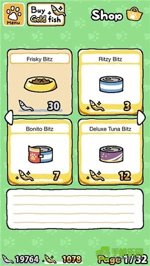 玩家可使用银鱼干或金鱼干在商店中购买猫粮与各类互动道具。