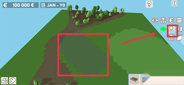 3、点击地面并拖动,释放触摸后,选择框内的每棵树或石头都会被选中,接着按下删除按钮即可完成删除操作。
