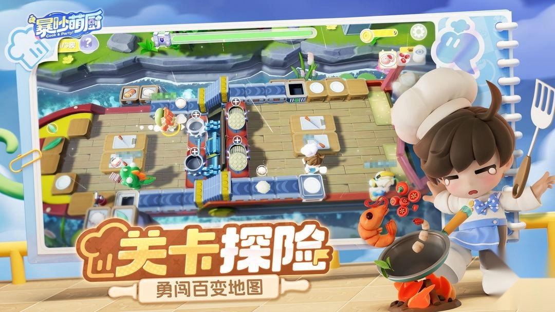 《暴吵萌厨》是一款趣味十足的多人合作游戏。它采用了软萌可爱的卡通美术风格,设计了形形色色的Q版小人形象,场景刻画也十分细腻,能为玩家带来出色的视觉体验。游戏核心玩法是多人协作的厨房烹饪,玩家可以和好友组队,通过默契配合完成菜品制作、招待顾客来获取收益,进而升级厨房设备、装饰餐厅,打造专属于自己的个性美食空间。