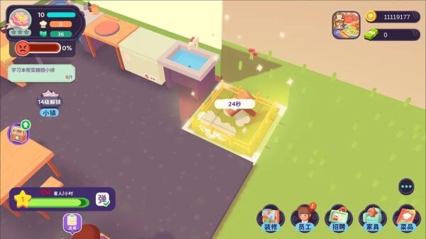 4、清理:在客人走后桌面上会出现清扫气泡,清扫好桌子下一位客人才会来,所以一定要记得及时清理。