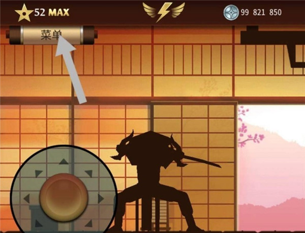 1.进入暗影格斗2这款以后,首先点击菜单按钮。