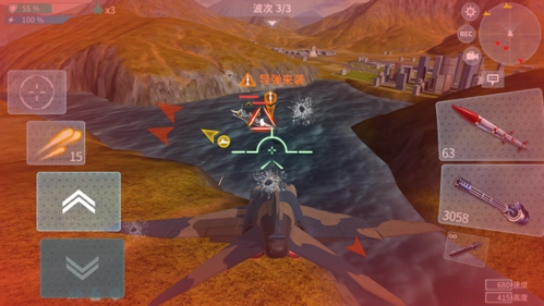 6、超震撼的视听特效:在音效拟真,画面精美,气势恢宏的《现代空战:3D》中,驾驶战机穿梭于沙漠荒原,巍峨雪山和摩天都市等诸多作战空域
