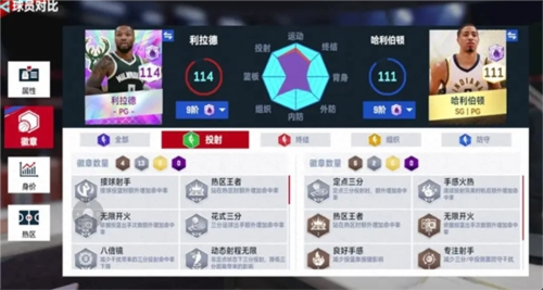 接着来看两位球员的能力徽章,而这也是小编为什么选择这两位球员的原因之一。