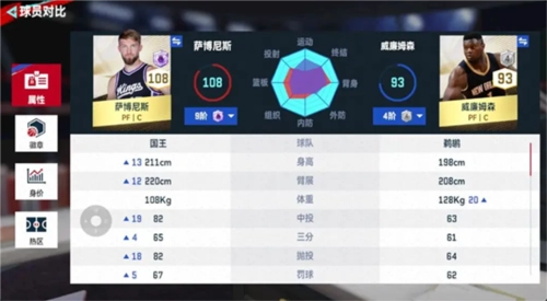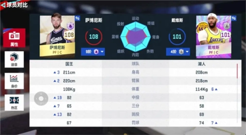 小编也在这里分析下为什么选这两个球员,首先如果一个球队里面小前锋和大前锋需要用金卡,那么说明队伍里有一个紫卡中锋和紫卡后卫,那其实锋线球员就需要更均衡的数值,而这两个球员也是在众多金卡锋线球员里数值较全面的。