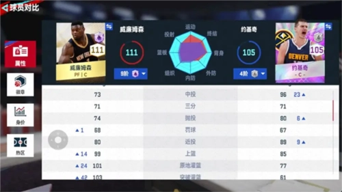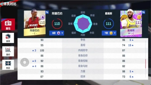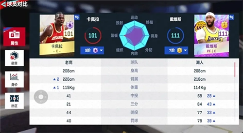 我们先来看下两个球员的面板数值对比: