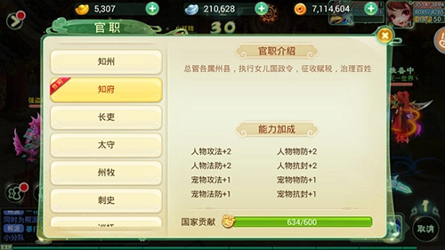 官职加成: