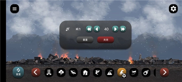 1、打开失控城市模拟器后,在下方可以对城市选择行动,比如放烟花或者放炸弹,再次点击同一个行动就可以更改威力大小或者关闭了。