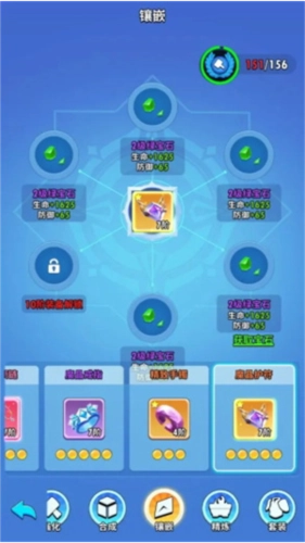 镶嵌宝石是提升角色额外属性的途径之一,每个装备最多镶嵌六个宝石,三个相同的宝石可以进行升级,宝石的合成需要在装备镶嵌界面合成,宝石的阶级越高增加的角色基础属性就越多。