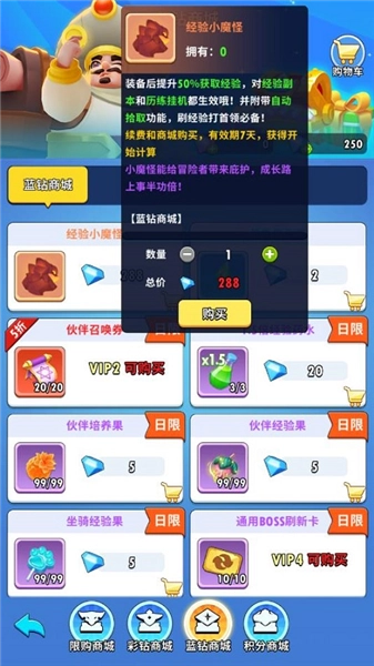 (经验小魔怪每次获取或购买有7天期限,可重复购买进行期限叠加,冒险家们记得过期之前要续上哦)