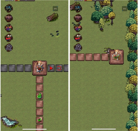 小路中点击某一个格子,就会建立路径,再次点击这个格子,角色就会移动起来。在移动过程中会触发各种事件,如障碍物、道具袋、怪物守卫、BOSS等。遇到怪物会转入战斗场景,战斗是自动的哦。当然一进入此页面,就会有管家告诉你怎么操作哦,镇长不用担心~