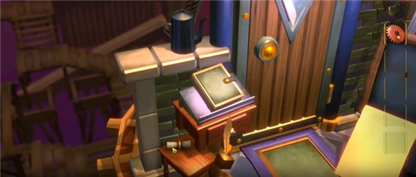 2、在点击书架上的墨水瓶,瓶子后有一卷纸,纸上有文字信息。