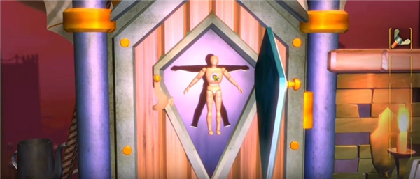 9、再次转回正面,把人偶放入,通过旋钮调整人偶的形状,使其与门的形状相契合。