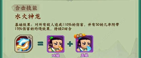 二娃拥有不俗的单体攻击能力,同时还可以激活大娃的合击技能,适合后排的4号位进行一波补刀收割人头。